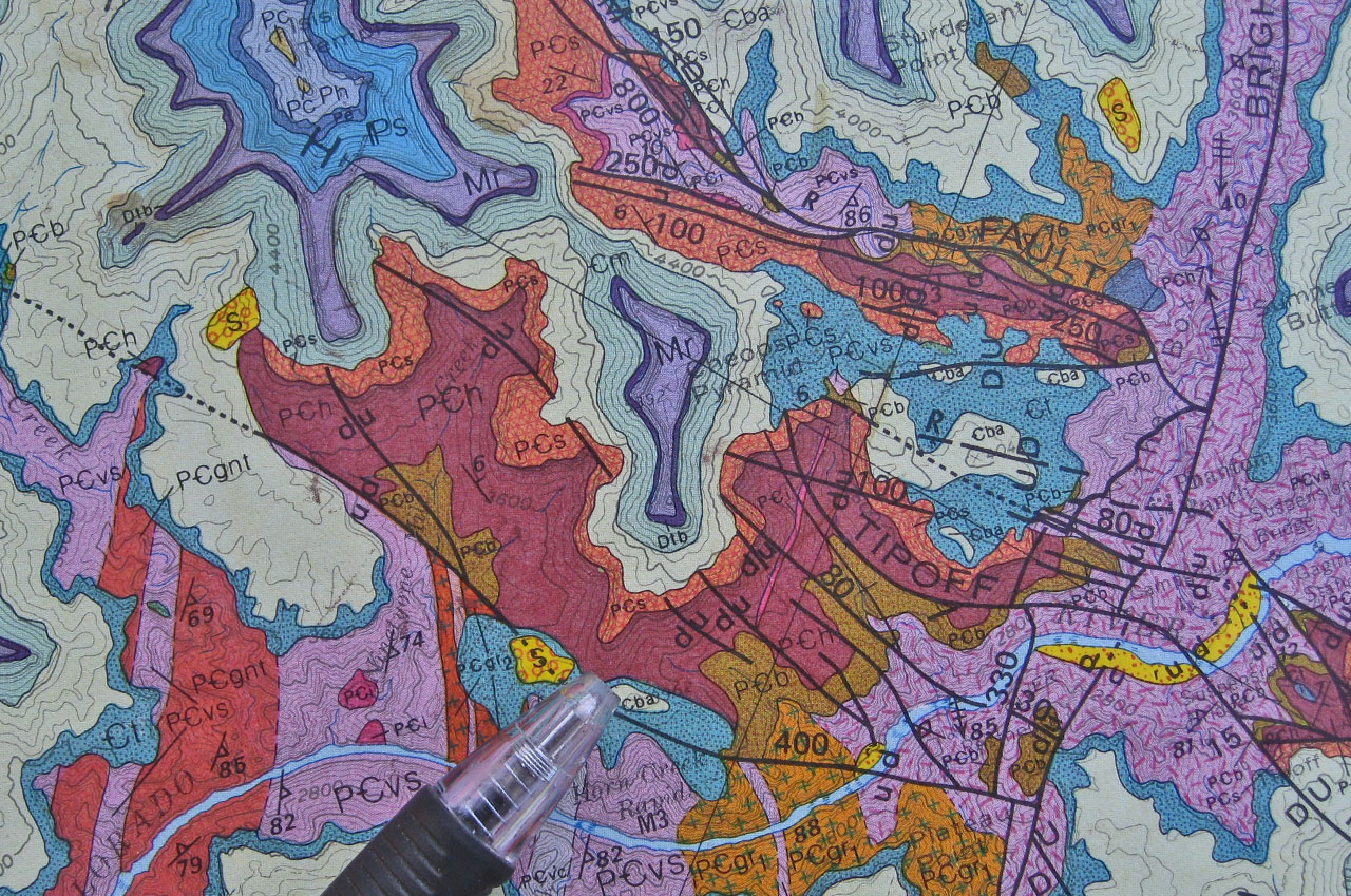 Background: Geological map of the Grand Canyon, USA. Credit: Brewbooks, Flickr