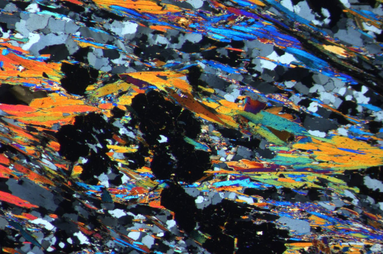 Background image: Thin section of rock viewed under the microscope; Credit: Chd / Wikimedia