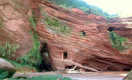 - Tunnel in cliffs at Horse Cove © Ray Girvan (source Geograph.org.uk). Creative Commons Attribution-ShareAlike 2.0 license.