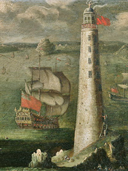 • Painting by Isaac Sailmacker (1633-1721) of the 2nd Lighthouse(Source Wikimedia Commons) Public Domain