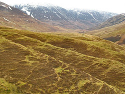 There are three levels of parallel ‘roads’ in the glen, all indicating different lake levels. These features are unique in Britain for their excellent preservation, and for the fact that they are partly cut into the bedrock.