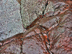 • Transition between red Serpentinite (Mantle) and grey gabbro (Crust) at nearby Coverack © Ian G. Stimpson @hypocentre