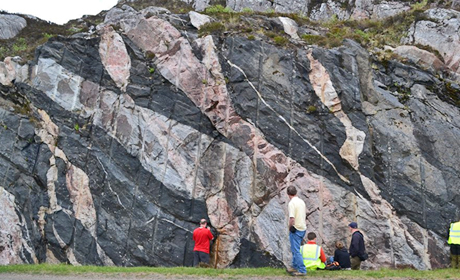 The cuttings excavated in the 1980s as part of the A838 road improvements between Laxford Bridge and Rhiconich, in NW Scotland, provide dramatic exposures of gneisses that give a glimpse of processes that operate in the middle continental crust during mountain building.