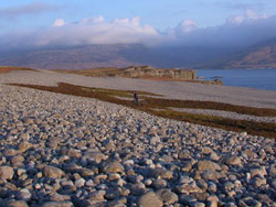 Raised beaches are superbly developed along the coast. They occur as terraces and extensive ‘staircases’ of unvegetated shingle ridges. The higher terraces extend up to about 40m OD and rest on the surface of the High Rock Platform. They were formed at a time of high relative sea level as the last ice sheet was melting around 15,000 years ago.
