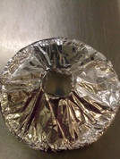 Cover the plate and cup with a sheet of foil - don't forget to make a hole above the cup for the caldera. |
