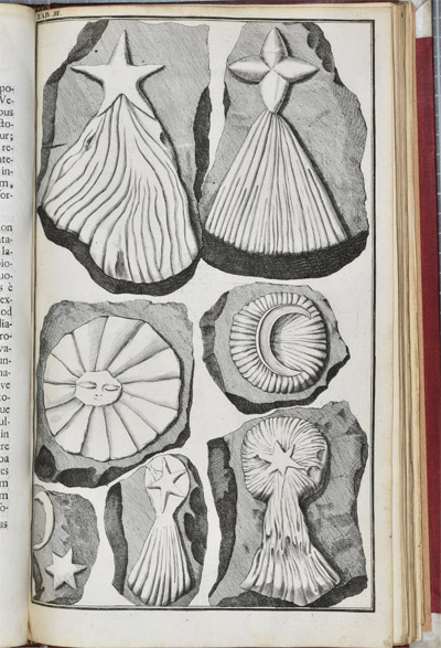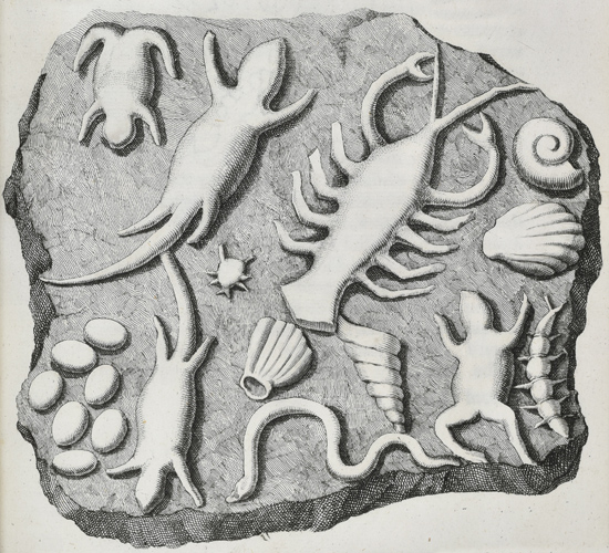 Johann Beringer’s understanding of nature and the world was, like many during this period, viewed through the prism of religion. Geology as a science was in its infancy and the origin of objects such as fossils [then termed ‘petrefactions’] was unclear. Petrefactions bore similarities to organisms, but not only were they made from stone but confusingly were found within the rocks themselves. Additionally there were many which looked like no living organism. In theological terms, God’s creation of the Earth was perfect. Extinction of species would imply a mistake. How then were petrefactions created?