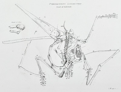 Reconstruction of the skeleton of Dimorphodon macronyx by Richard Owen from 'Monograph of the Fossil Reptilia of the Liassic Formations’, Monograph of the Palaeontographical Society, Vol 35 (1881). GSL Library collections.