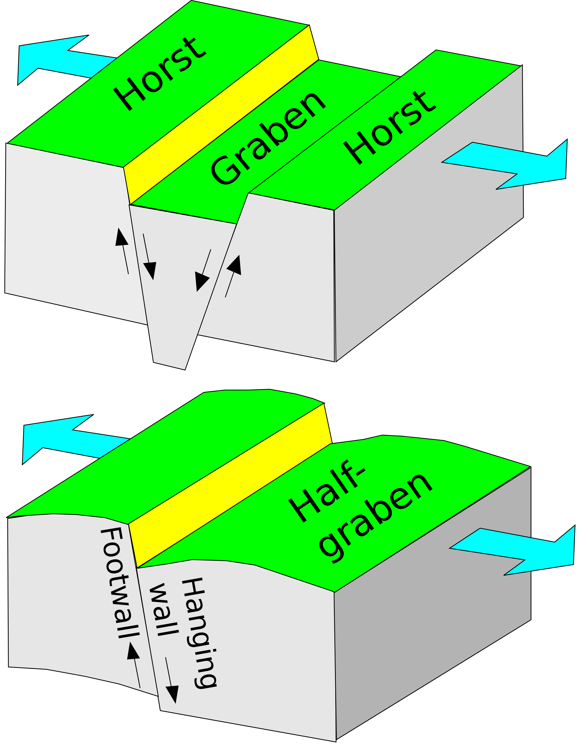 | Geological concept of grabens and half grabens: © Aymatth2 |