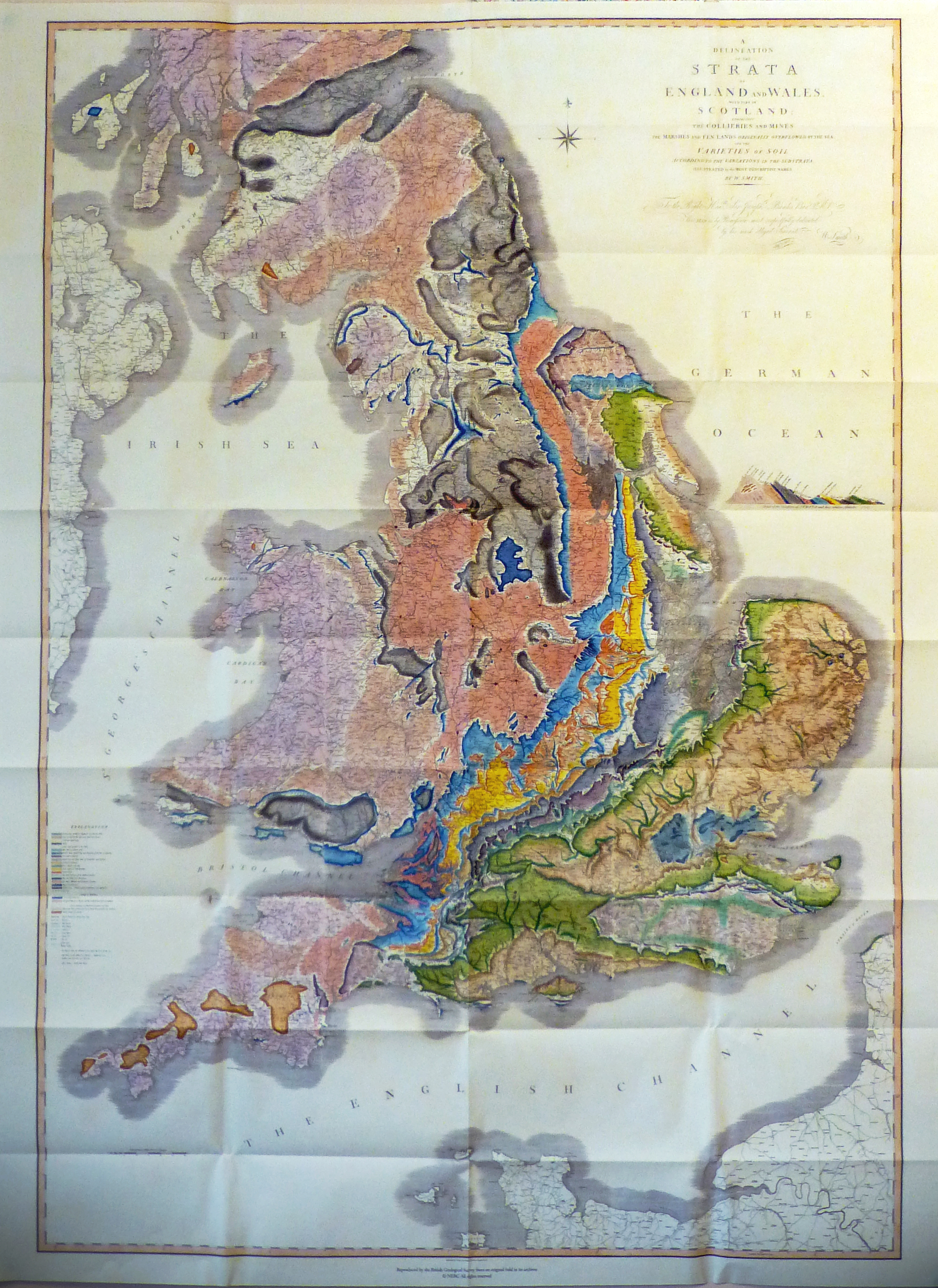 Original Title: A Delineation of the Strata of England and Wales with part of Scotland; exhibiting the collieries and mines, the marshes and fen lands originally overflowed by the sea, and the Varieties of Soil according to the variations in the Substrata, illustrated by the most Descriptive Names