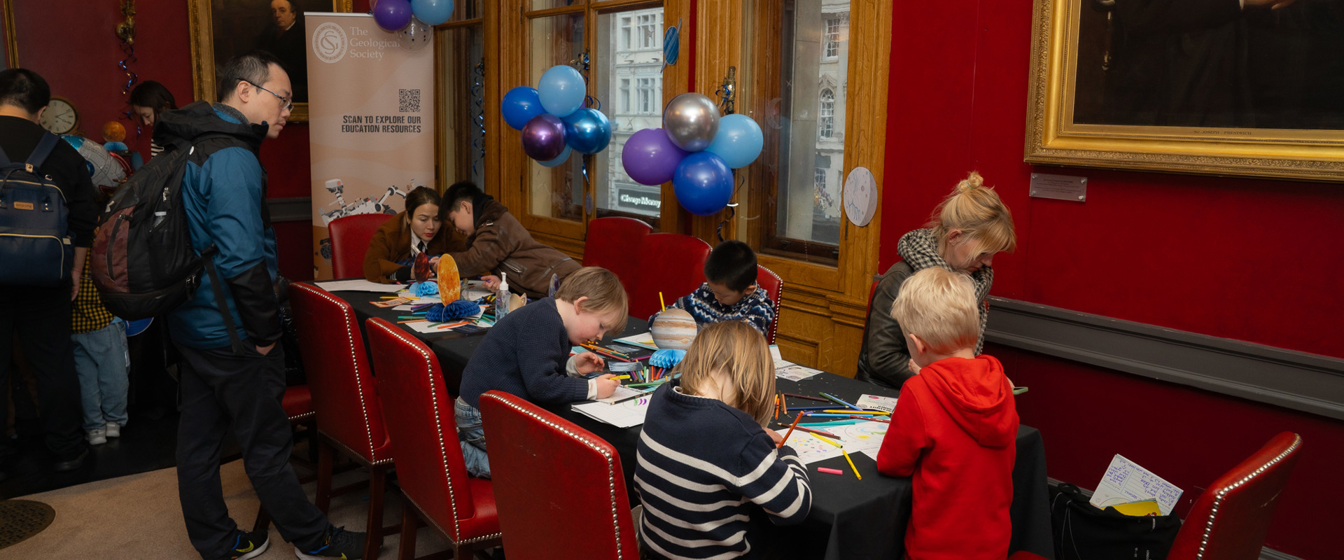 We also organised our very own planetary geoscience outreach and science engagement week, called Space Week. Space Week took place from 18-28 February 2025 and included a series of space-themed outreach and education events. With the aim of making space and planetary geoscience accessible and exciting to all audiences and ages, we hosted school workshops, a free Public Lecture – 'From Apollo to Artemis', teacher training, and two family fun days at Burlington House.