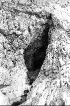 Keep your eyes open as you go for a water-pumping station behind the trees to the right. Here is where the stream emerges, after flowing underground for the entire length of the valley opening out on your right. Go through the wooden gate and make your way up the gravel track. A little way on, on the eastern side and opposite the chambered long-barrow known as Giant's Grave, is Cathole Cave (picture), set in Cathole Rock. Examination of the walls of this cave will reveal obvious signs of water-working which any caver will immediately recognise (shallow rippling effect). It is quite easy to imagine this cavern as the minor side-chamber of a main watercourse, now long since collapsed.