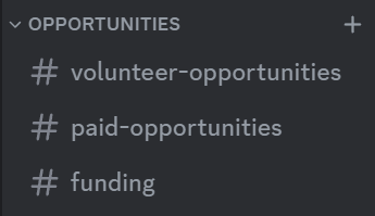 Find or list volunteering or paid work opportunities in the OPPORTUNITIES channels. |