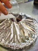 Cover the plate and cup with a sheet of foil - don't forget to make a hole above the cup for the caldera. |