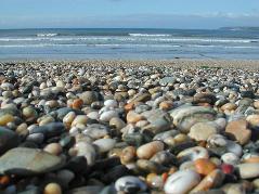 Conglomerate is made of pebbles deposited on beaches or in river channels. The pebbles have become cemented together by minerals precipitated from groundwater after the sediment was laid down.