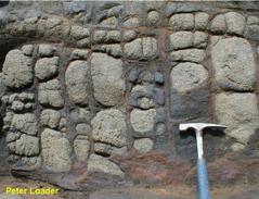 Oxidation - the breakdown of rock by oxygen and water, often giving iron-rich rocks a rusty-coloured weathered surface.