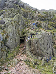 The Crinkle Crags are a classic and complex area of volcanic geology, dating from the late Ordovician. The Borrowdale volcanic group are a series of andesitic lavas and pyroclastic rocks, erupted from an arc of volcanoes that had developed above an active subduction zone - in this case, along the southern margin of the Iapetus ocean.