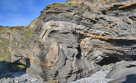 Here the Variscan orogenic front is preserved with structures developed in Upper Carboniferous fluvio-deltaic sandstones and shales. The sea cliffs between Little Haven and Broadhaven display spectacular fold structures, made more complex by faulting.