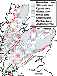 - Map of the metamorphic zones of Scotland © Woudloper (source Wikimedia Commons) Creative Commons Attribution-Share Alike 3.0 Unported License
