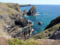 Kynance Cove is known for its flora and fauna as well as its geological significance, and it is sometimes possible to spot the rare Cornish chough, the bird of the Cornish coast of arms, perching in the clifftops.