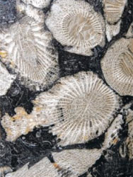 The building stones used expose some excellent geology, including the local ‘Frosterley Marble’, a black limestone containing fossil corals of the Carboniferous Period.
