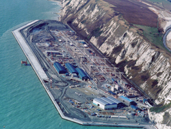 The Tunnel reaches the UK coast at Shakespeare Cliff, to the west of Dover and close to a platform created on the foreshore in 1843 during construction of the London to Dover railway. An exploratory adit was driven from this platform during an earlier phase in 1974 and this was used as the main access for construction of the UK tunnelling works. The spoil from the works was used to extend the platform westwards and the area later formed the Samphire Hoe Nature Reserve.