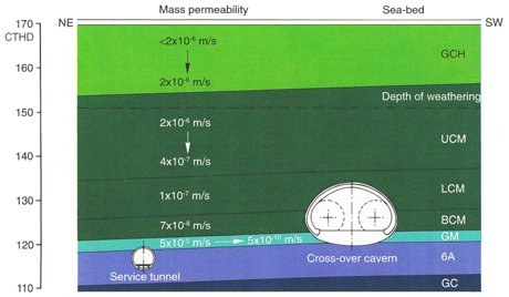 The tunnels are located wherever possible in the most favourable tunnelling medium, the West Melbury Marly Chalk (formerly known as the Chalk Marl) towards the base of the Lower Chalk. This Marly Chalk is free from flints, generally has a very low permeability and is usually less fissured than the overlying Chalk strata.