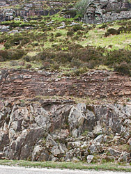 The eastern section displays a gently undulating contact, a segment of the ancient land surface upon which the Torridon strata accumulated. The section of low road cuts to the west are characterised by a weathered profile of Lewisian gneisses beneath the unconformity, which potentially gives insights into the chemical weathering processes more than a billion years ago.