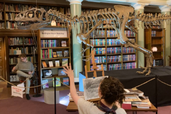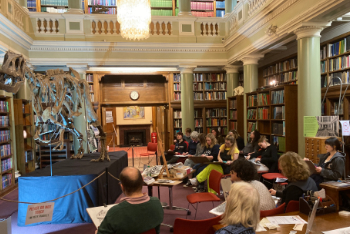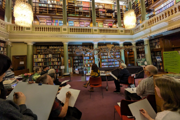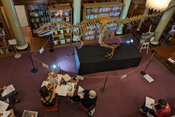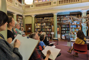 In these artistic sessions, participants were encouraged to engage with the grand setting of the Library and it's atmospheric light and shadow to create dramatic sketches of the Megalosaurus skeleton with geologist and artist Emma Therese Jude.