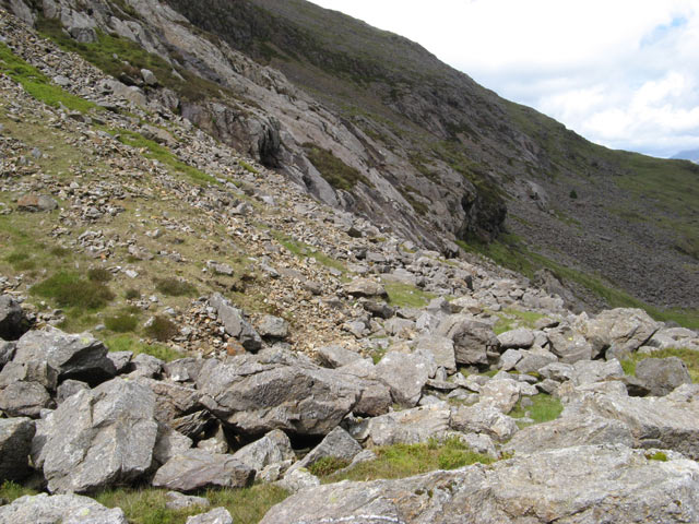 | Boulders and scree at the base of the Pitt's Head Tuff: © Jonathan Wilkins |