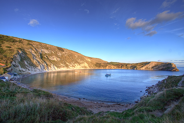 Lulworth Cove owes its form to the tectonic upheavals that produced the Purbeck Monocline. The chalk forms the back wall with the outer headlands of Portland Stone (Jurassic limestones) steeply inclined inland. Collectively these beds of the Purbeck Monocline form the northern limb of a vast anticline, the crest of which has been eroded out in Lyme Bay. The much-photographed tiny folds in Stair Hole also relate to this folding.