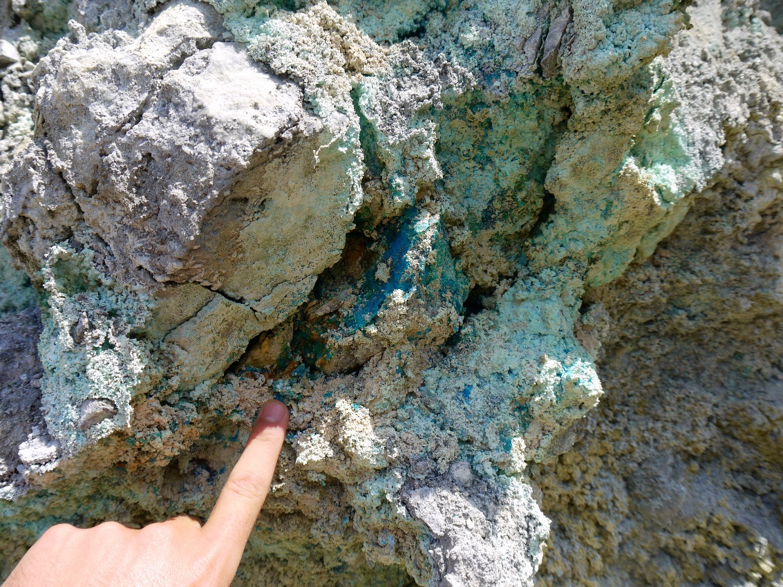| Blue staining often indicates copper secondary minerals such as malachite: © Andrew Martin |