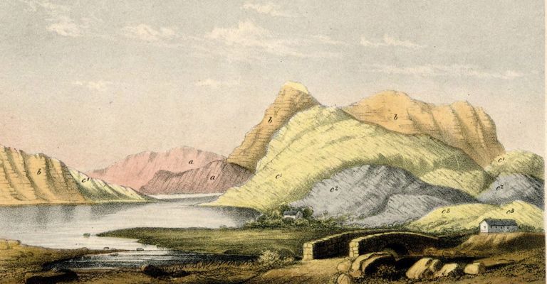 Coloured lithograph of Loch Assynt and Quinaig Mountain by Vincent Brooks after Charlotte Dempster, 1859. (Archive ref: LDGSL/535)