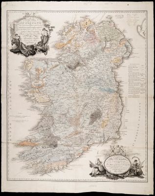 Left: Geological colouring on Taylor's 'A New Map of Ireland', [1813-1820s]. (Greenough collection, ref: LDGSL/947/6/F/4)