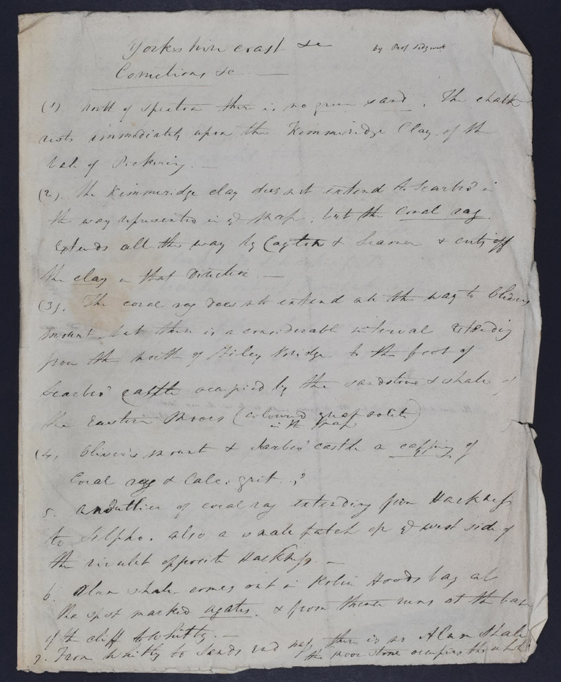 Adam Sedgwick's list of errors in the depiction of strata in Yorkshire, [c.1825]. (Greenough collection, ref: LDGSL/947/4/3/5/1)