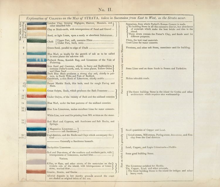 Explanation of Colours on the Map of Strata... (1815) from the Memoir accompanying William Smith's 1815 map.