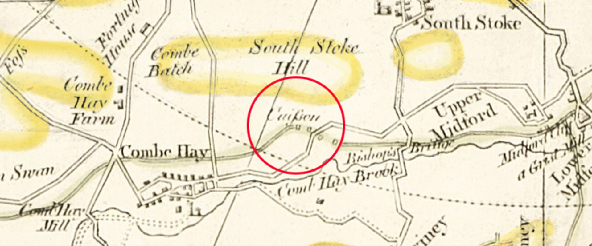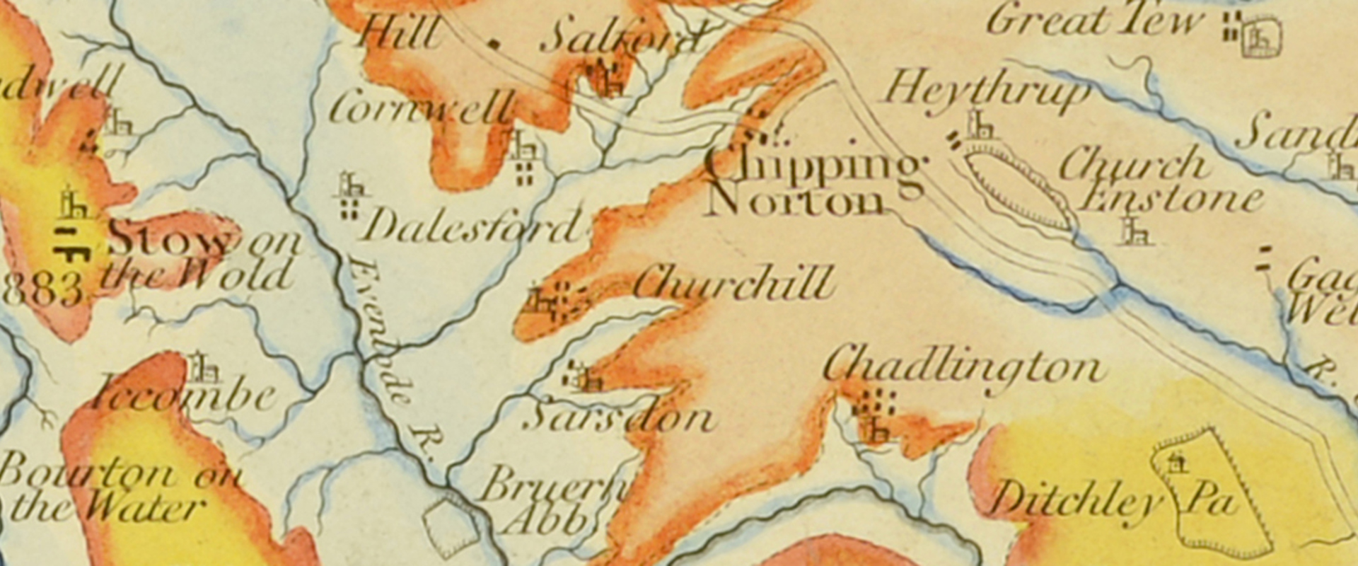 Detail from William Smith's 1815 map showing the village of Churchill. (Archive ref: LDGSL/22).