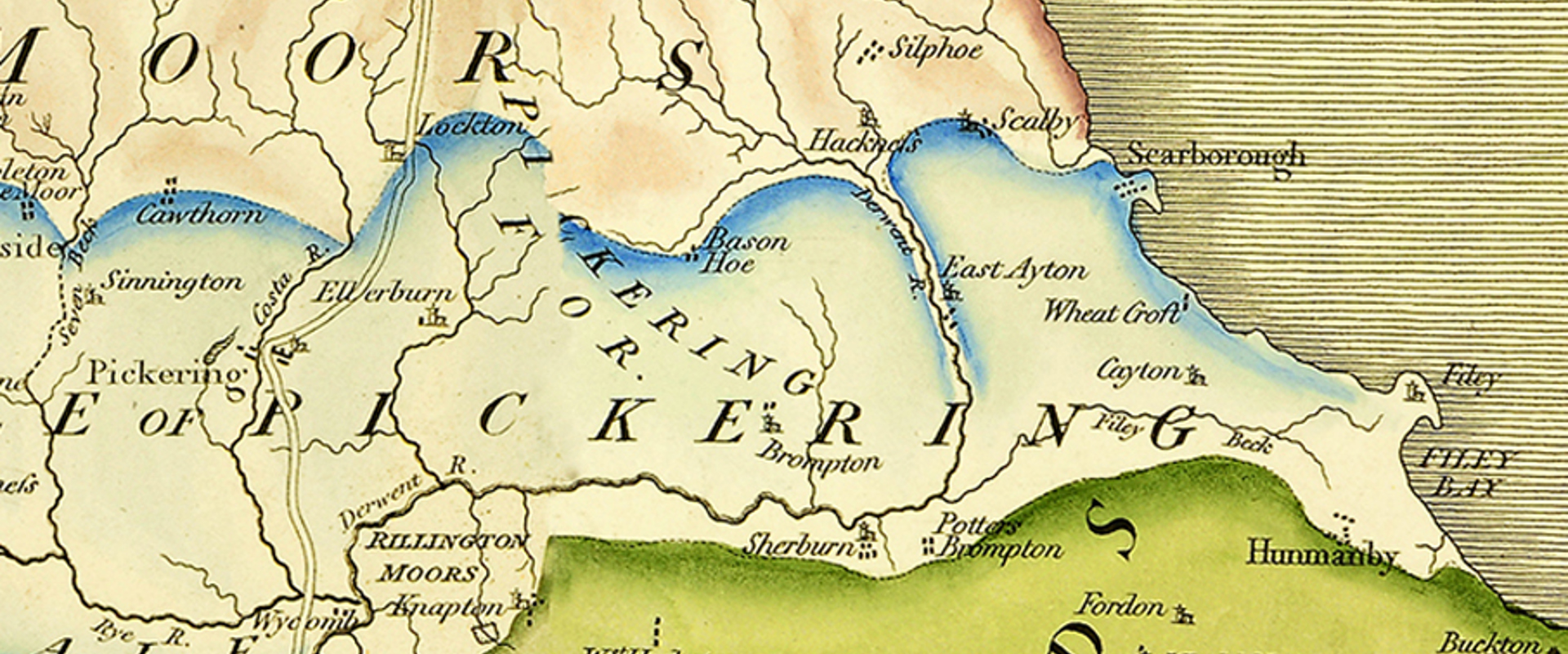 Detail from William Smith's 1815 showing Scarborough on the coast and Hackness (towards the centre).