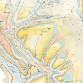 Until the late 1820s, William Smith, aided by his nephew John Phillips (1800-1874), was again working as an itinerant geologist and surveyor for hire around the country, but also began lecturing on the subject in Yorkshire. In 1828 Smith was appointed land steward to Sir John V B Johnstone, Bart, of Hackness, Yorkshire where he produced his last major work – a geological map of Johnstone’s estate, ‘The Stratification in Hackness Hills’ which was published in 1832.