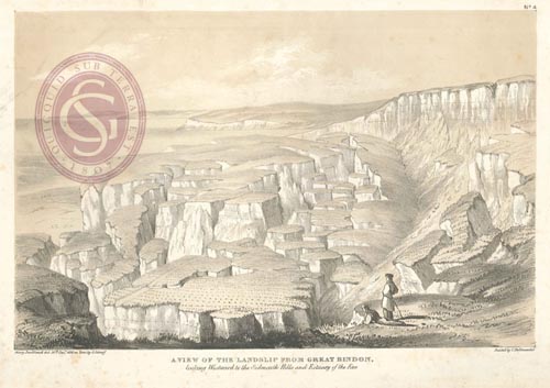 Tinted lithograph, 'View of the landslip from Great Bindon', Dorset, 1840. Delineated by Mary Buckland, 30 December 1839, on zinc by George Scharf. Printed by Charles Hullmandel. (ref: LDGSL/56/1/6)