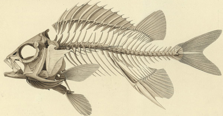 Drawing of the skeleton of Holocentrum Leo by Joseph Dinkel, c.1832-1833, from the Jardin des Plantes, Paris. (Archive ref: LDGSL/613/5/2/1)